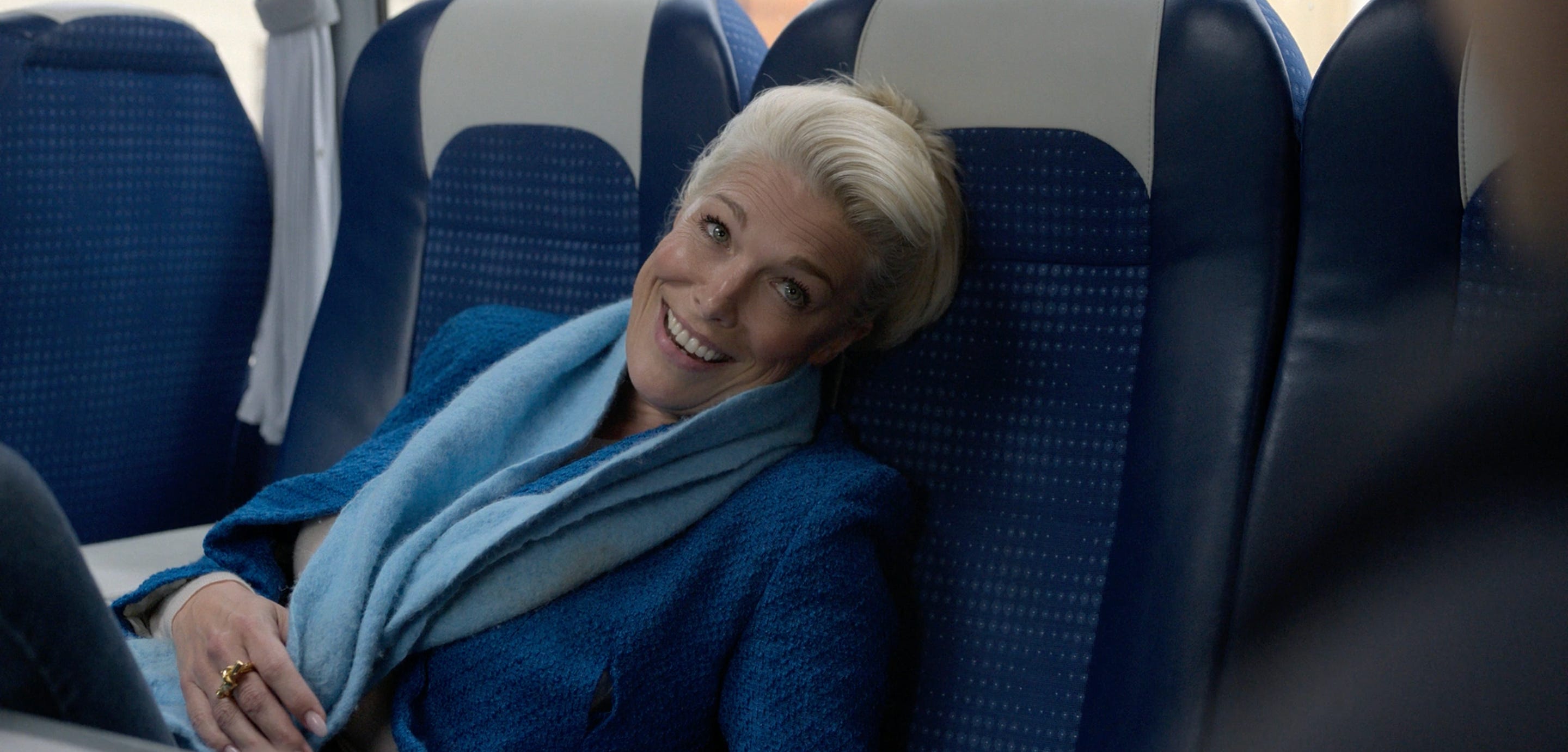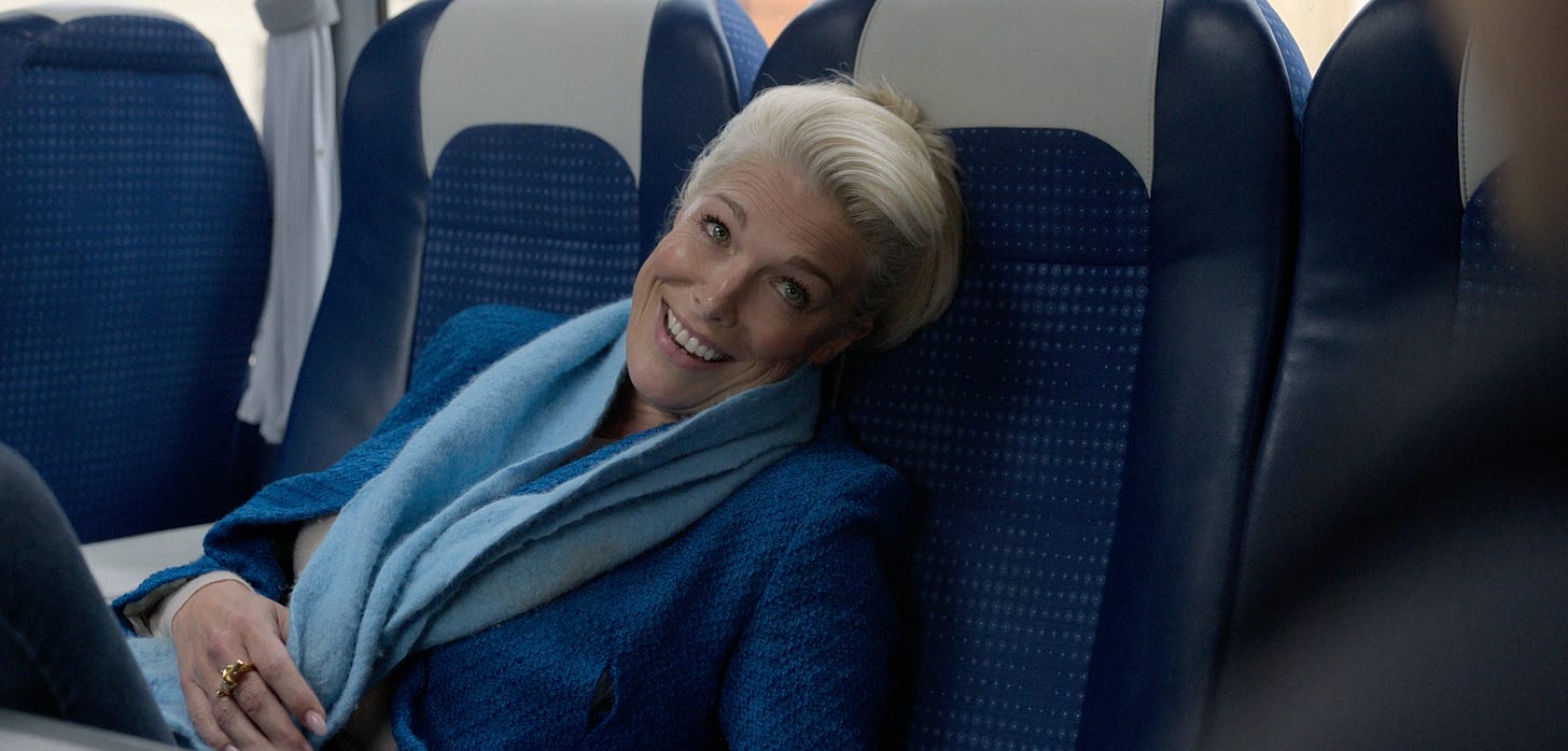 In “real life” Rebecca puts herself together with a specificity, with fitted clothes, perfectly coiffed hair, and jewelry sometimes sharp enough to double as a shiv. When she feels it’s called for, she’s a powerhouse, a force of nature who will yell at a star player for acting like he’s too good for her team. Here on this boat she dresses up in another woman’s clothes, her hair simple, her dress springlike and flowing, and she dances and sings unabashedly. The experience reads like a romantic movie; she doesn’t even exchange names with the man who’s grantd her this time in his home, but it feels like it’s meant something. They know in the moment that they’ll look on fondly on the time they spent together in the future.